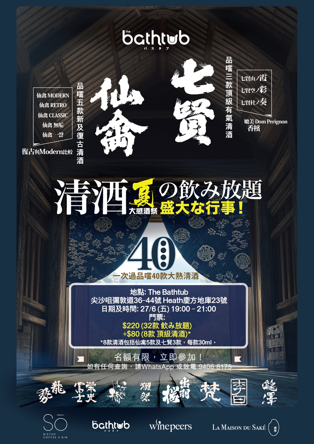 💰價錢: $220 (32 款清酒放題), +$80 (8款 仙禽及七賢清酒)